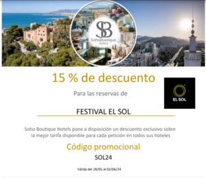 La organización en colaboración con la Agencia del Festival, pone a disposición de los asistentes algunas plazas de hotel a unos precios acordados con los mismos. Una vez se haya realizado el pago de la inscripción, se podrá contactar con la Agencia IN&OUT TRAVEL para realizar reservas de habitaciones en: